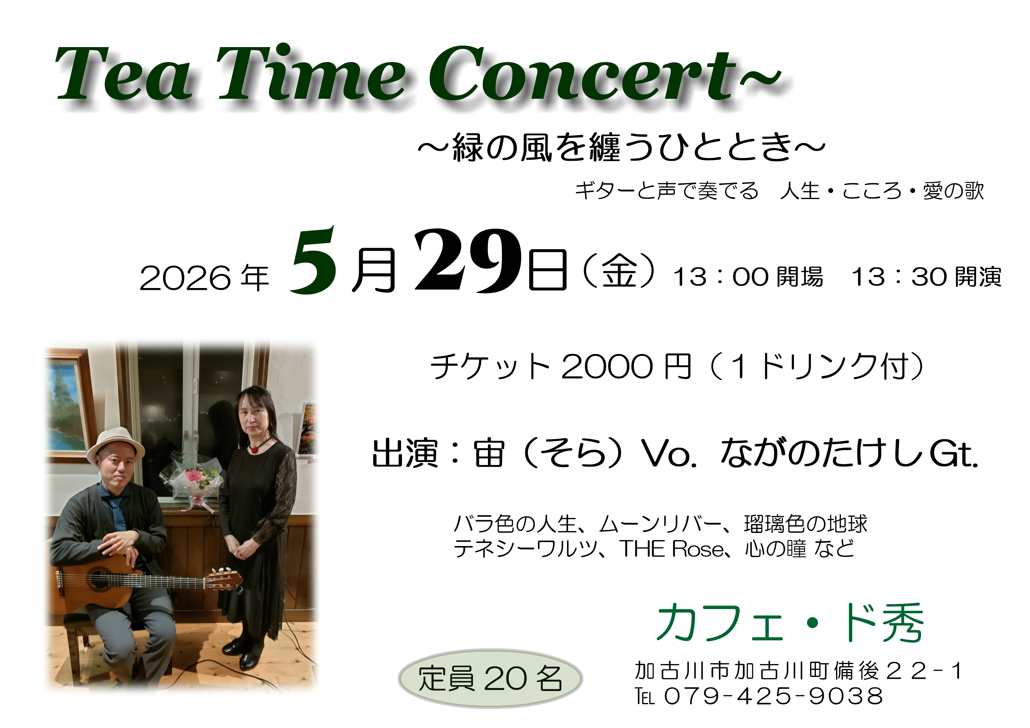 ・5月29日(金) カフェド秀 13:30~ 歌とギター 2000円(ドリンク付