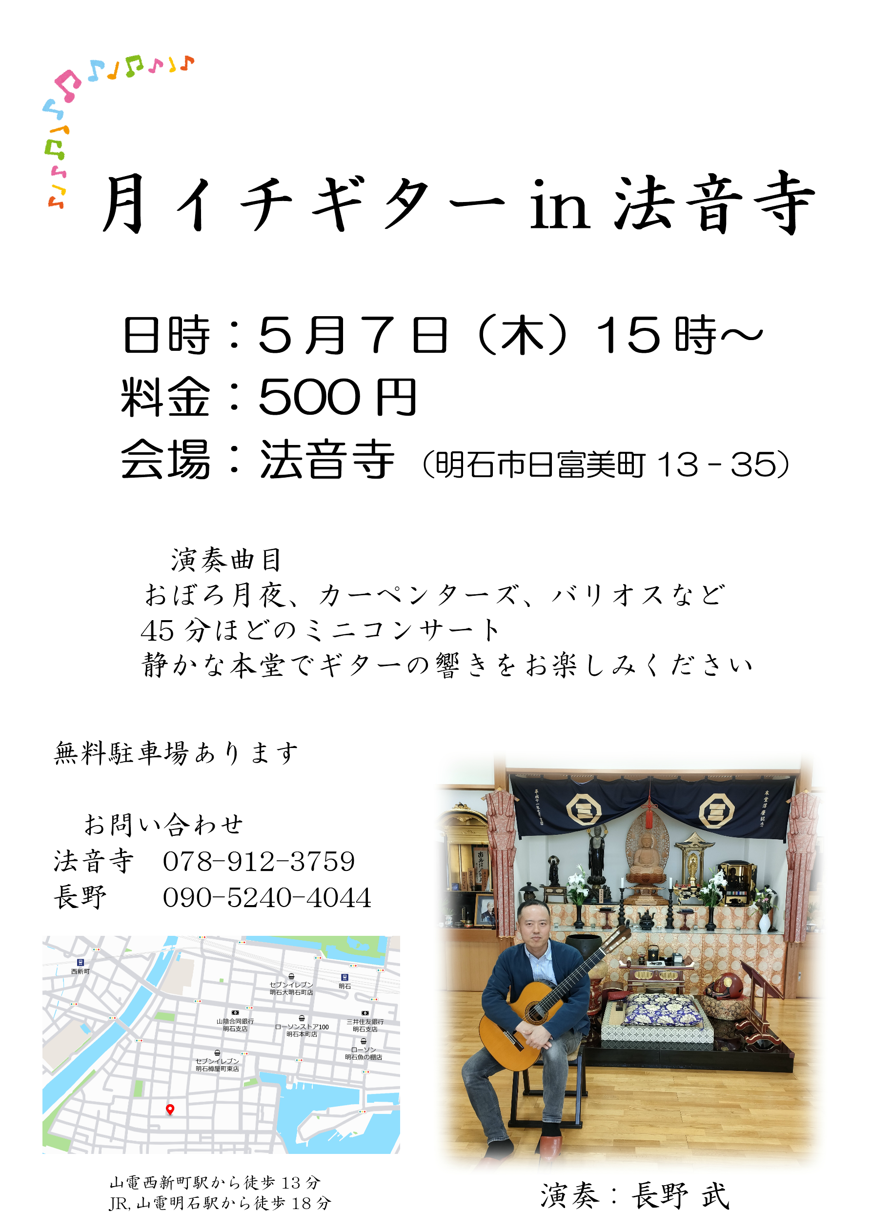 ・5月7日(木) 月イチギターin 法音寺 15:00~ 500円
