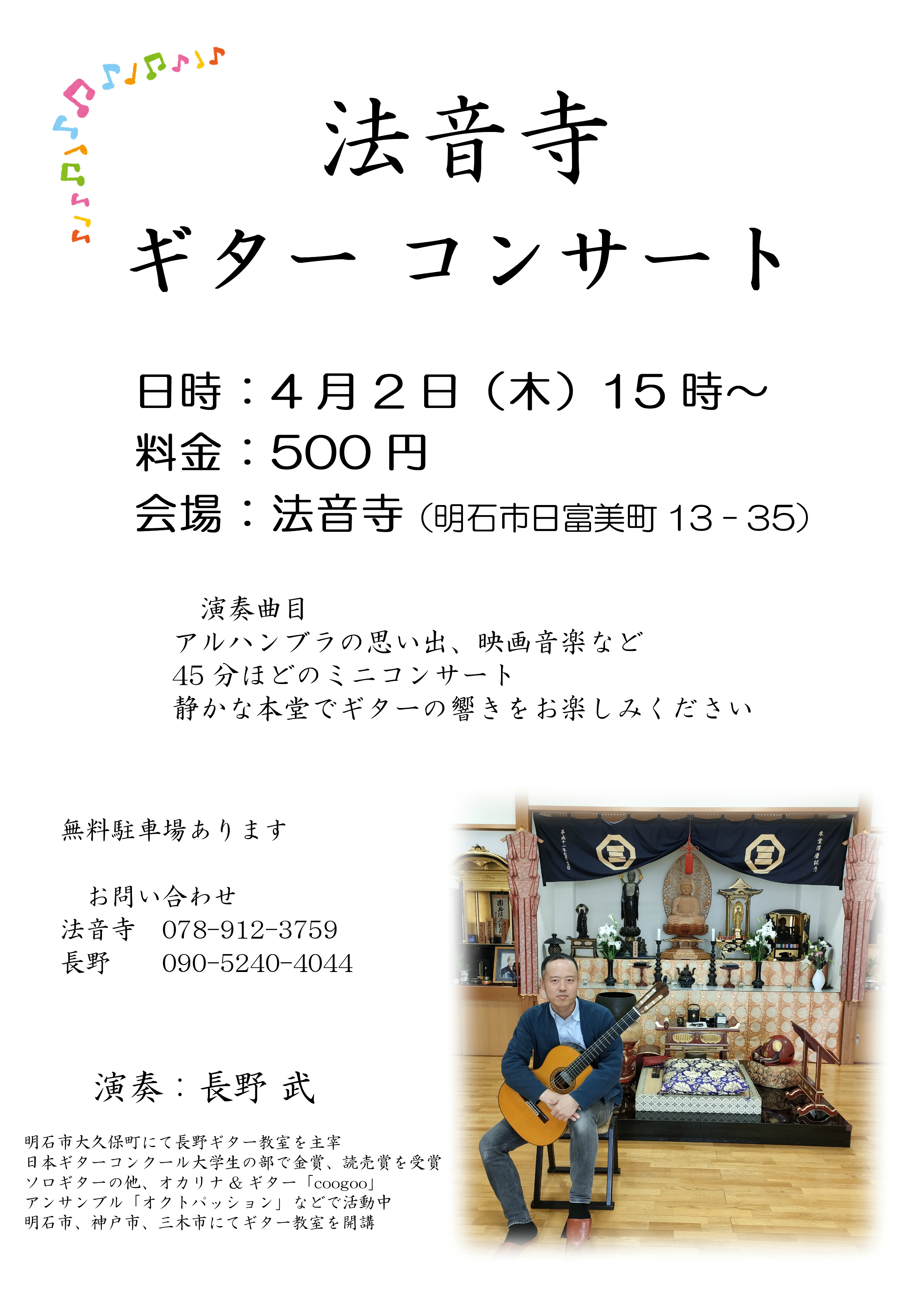 ・4月2日(木) 法音寺ギターコンサート 15:00~